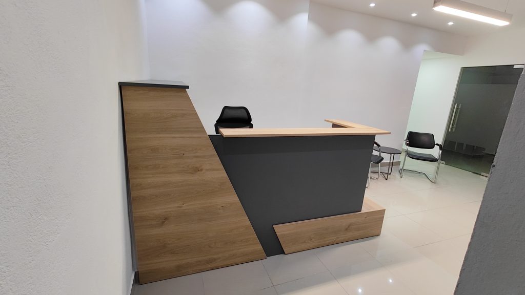 Counter para recepción oficinas ENTE Consultores, según especificaciones del cliente.